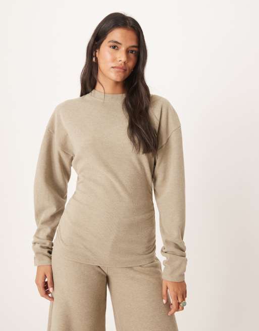ASOS DESIGN Supersoft cinched waist long sleeve tee in taupe heather