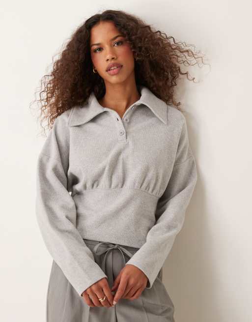ASOS DESIGN supersoft extreme collar henley batwing top in gray