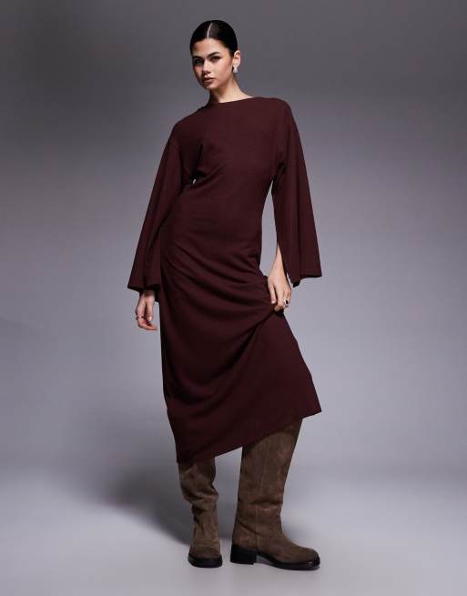 ASOS DESIGN supersoft funnel neck wide sleeves midi dress in chocolate
