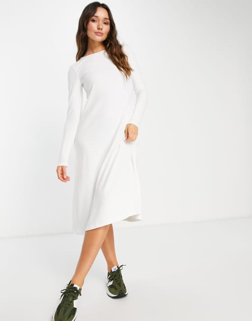 ASOS DESIGN supersoft long sleeve midi swing dress in white