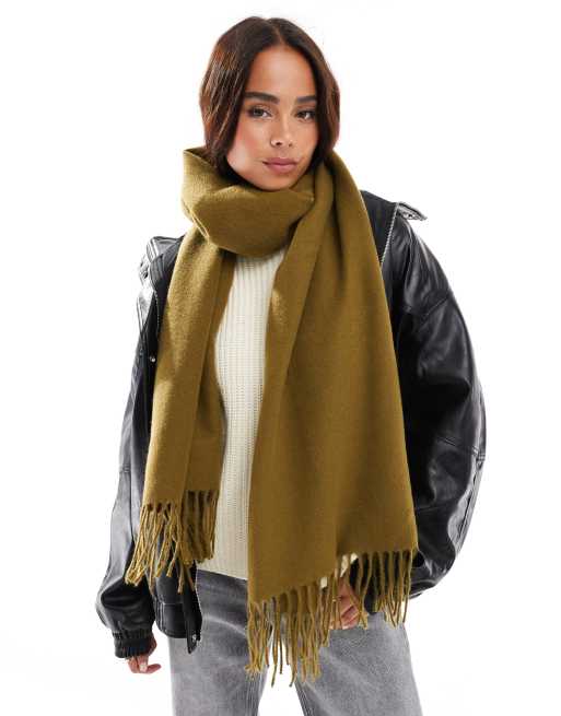 ASOS DESIGN supersoft scarf with tassels in pea green