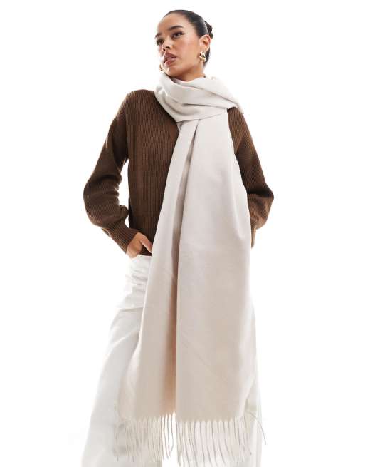 ASOS DESIGN supersoft scarf with tassels in stone