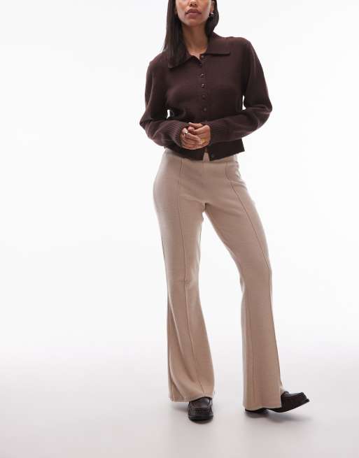 ASOS DESIGN Supersoft seam detailing kick flare pants in stone