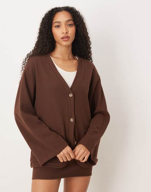 ASOS DESIGN Supersoft touch oversized cardigan in chocolate - part of a set