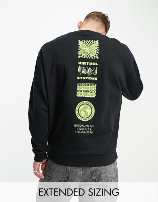 ASOS DESIGN sweatshirt in black with spine back print and chest print