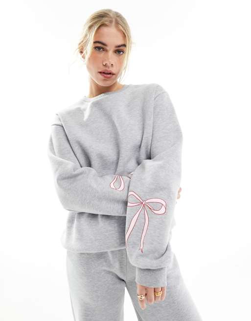 ASOS DESIGN sweatshirt with bow detail in gray heather - part of a set