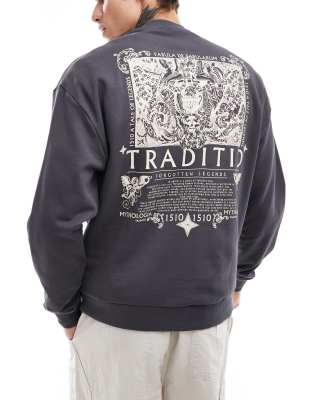 ASOS DESIGN sweatshirt with cherub print in charcoal gray
