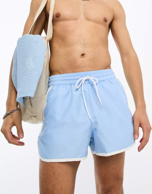 ASOS DESIGN swim shorts in super short length with contrast side panels in blue