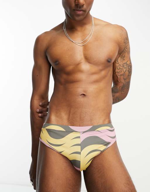 ASOS DESIGN swim trunks in wavy print