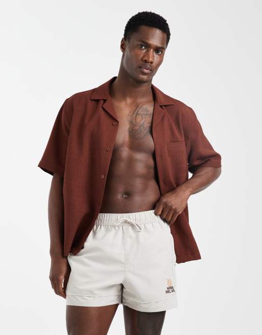 ASOS DESIGN swimsuit in short length with embroidery in beige