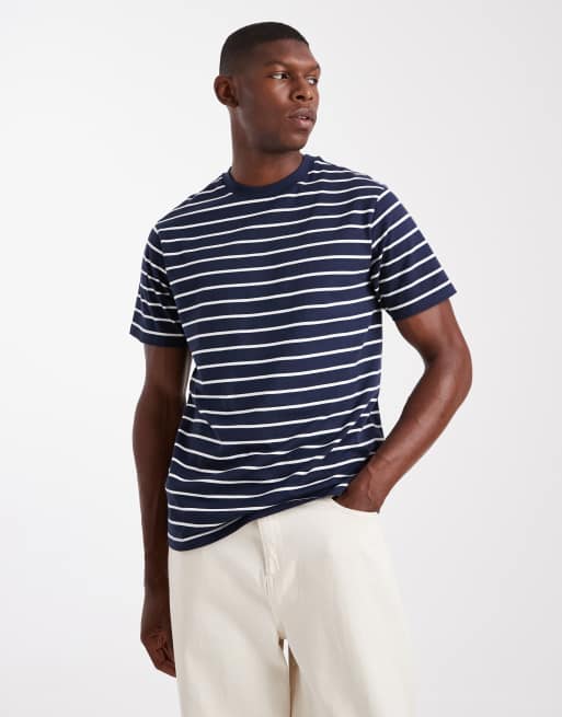 ASOS DESIGN t-shirt in navy and white stripes