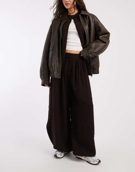 ASOS DESIGN tailored balloon pants with pleated detailing in brown
