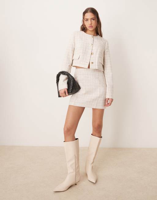 ASOS DESIGN tailored blazer and mini skirt set in ecru boucle