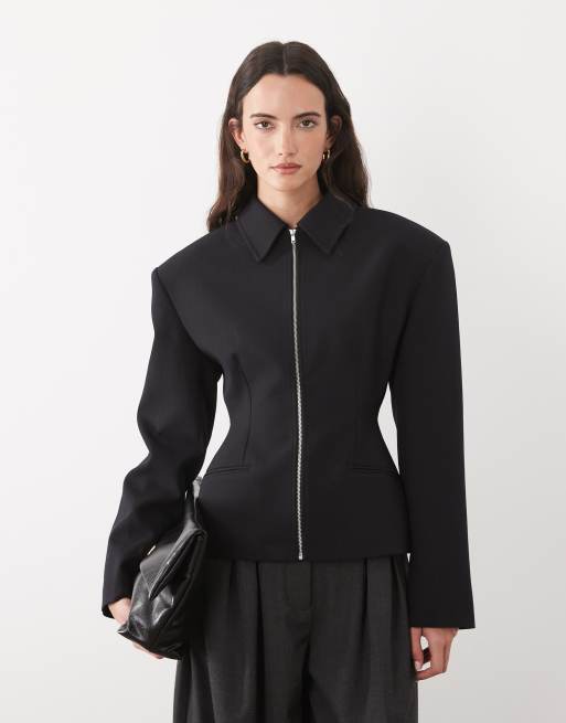 ASOS DESIGN tailored cinch waist zip up jacket in black
