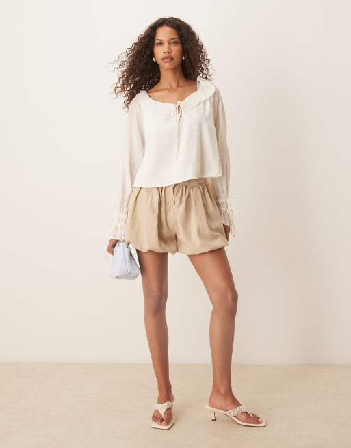 ASOS DESIGN tailored crinkle bubble hem shorts in stone