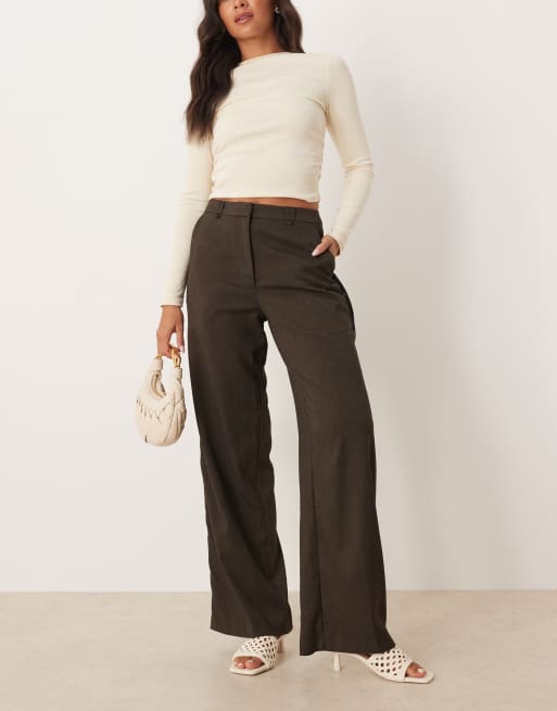 ASOS DESIGN tailored relaxed pants with faux leather trim in brown herringbone