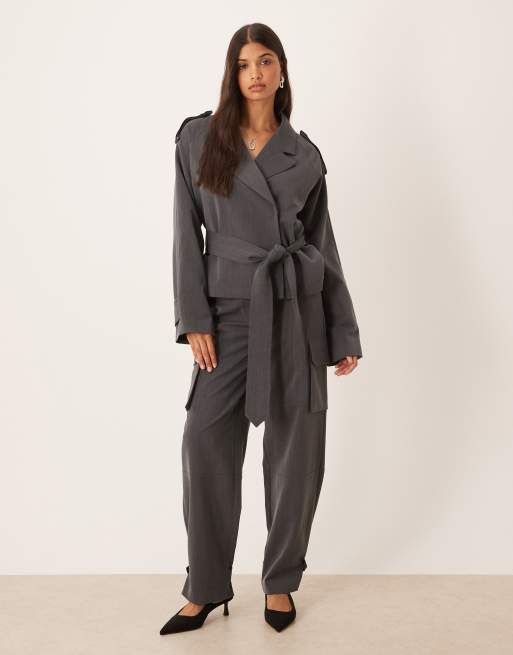ASOS DESIGN tailored soft trench coat and cargo pants set in dark gray