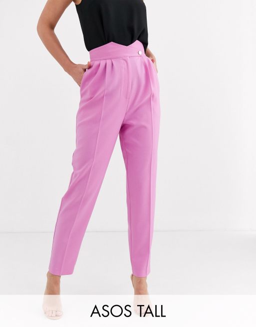 ASOS DESIGN Tall high waist tapered pants with button detail