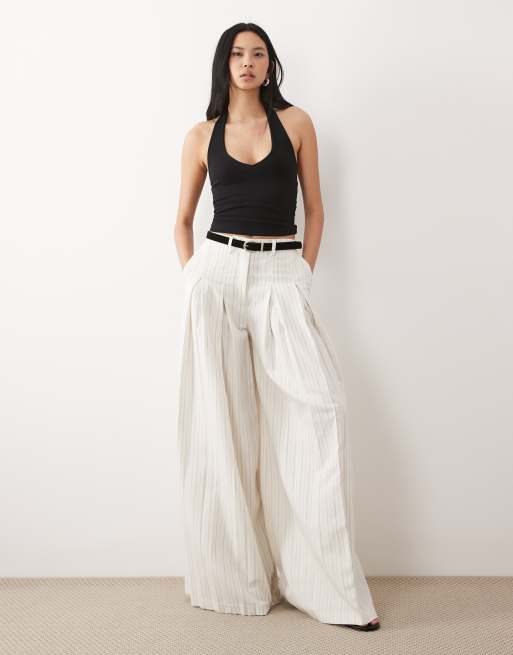 ASOS DESIGN Tall tailored belted palazzo pants with linen in ecru stripe