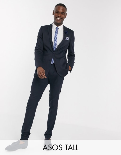 ASOS DESIGN Tall wedding super skinny suit in wool look in navy