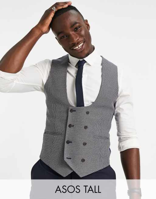 ASOS DESIGN Tall wedding super skinny suit suit vest in micro texture in tan