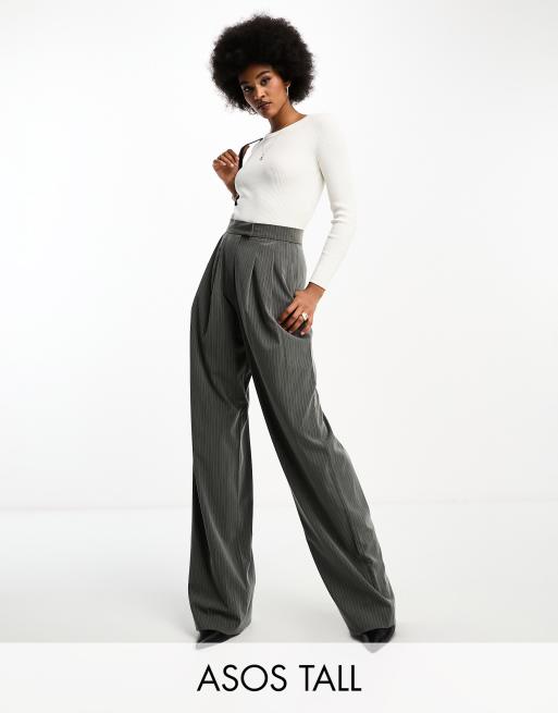 ASOS DESIGN Tall wide leg pleated striped pants in gray