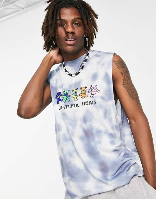 ASOS DESIGN tank top with Grateful Dead print in tie dye blue