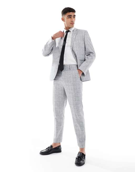 ASOS DESIGN tapered cotton blend suit pants in light gray texture