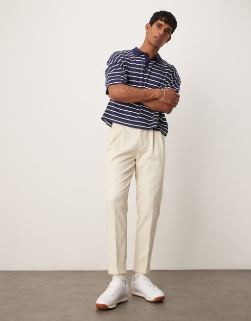 ASOS DESIGN tapered dress pants with exposed buttons in beige