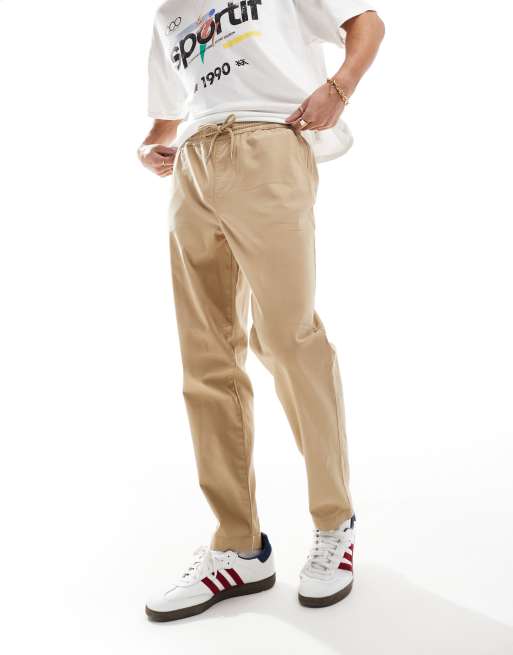 ASOS DESIGN tapered pull on chino with elastic waist in beige