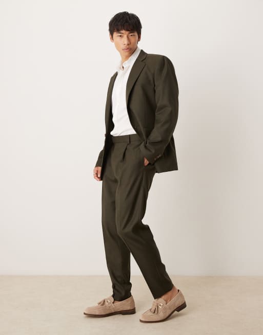 ASOS DESIGN tapered suit pants in olive green heather texture