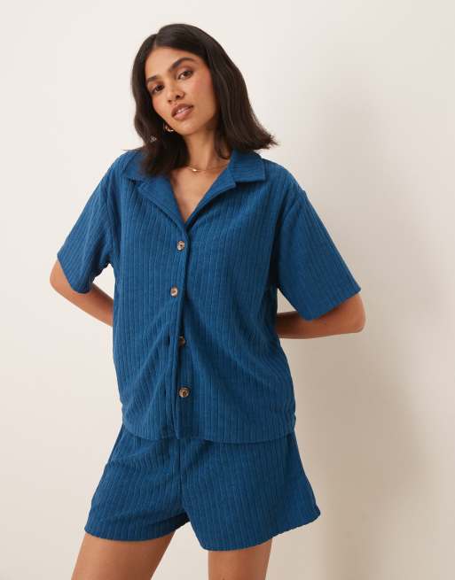 ASOS DESIGN terrycloth camp collar shirt in blue - part of a set