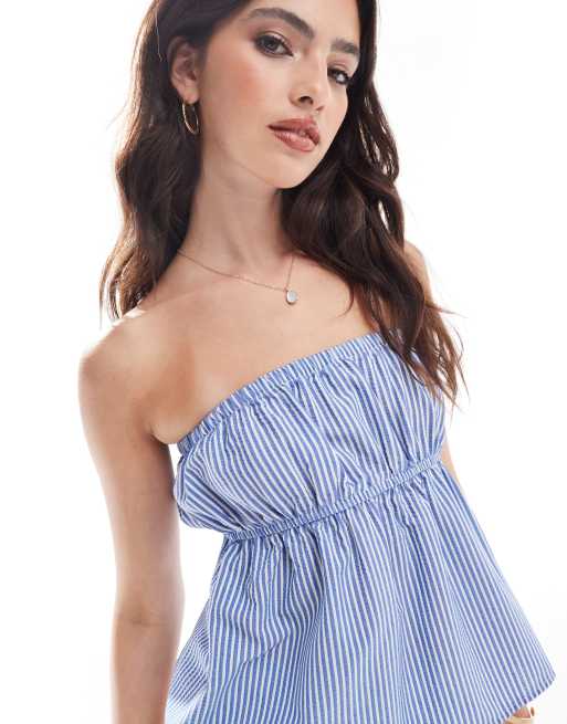 ASOS DESIGN textured bandeau top in blue stripe