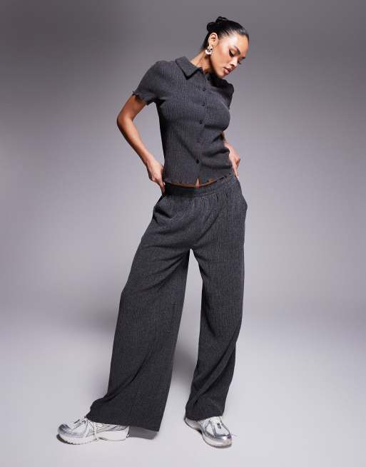 ASOS DESIGN textured button up short sleeve shirt and pants in charcoal