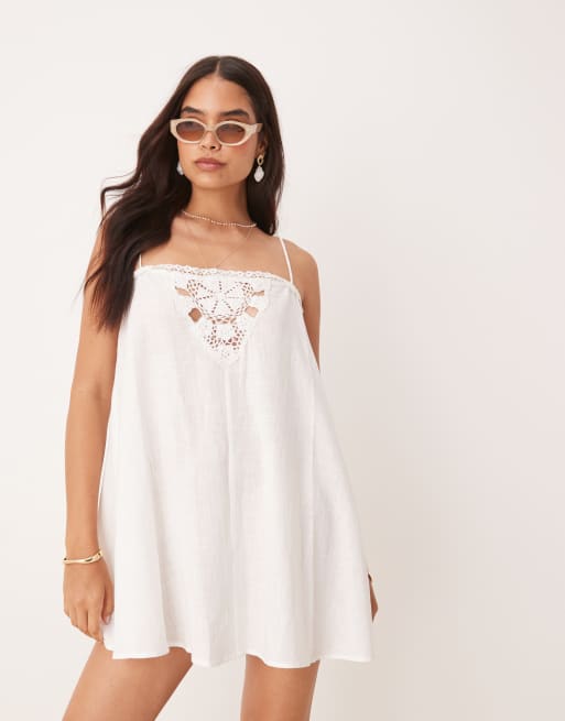 ASOS DESIGN textured doily insert mini beach dress in white