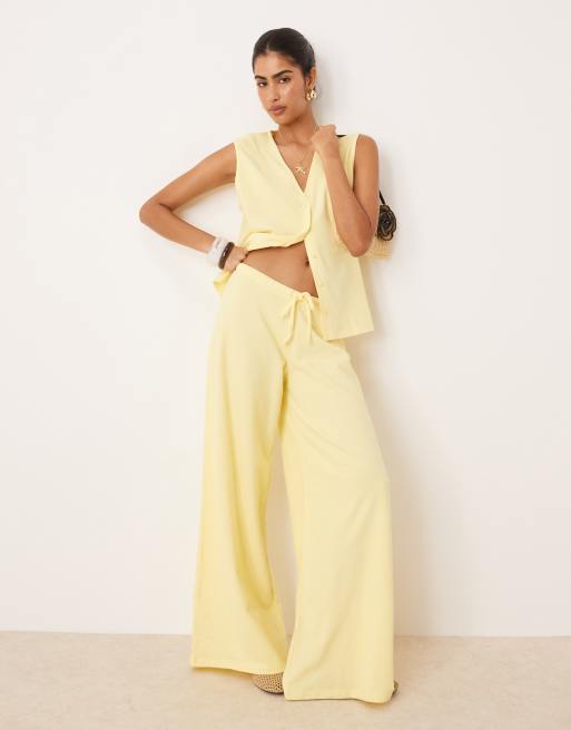 ASOS DESIGN textured knit wide leg pants in buttermilk - part of a set