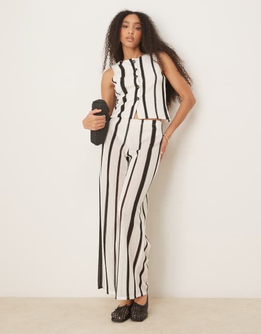 ASOS DESIGN textured semi sheer vest top set in black and white stripe