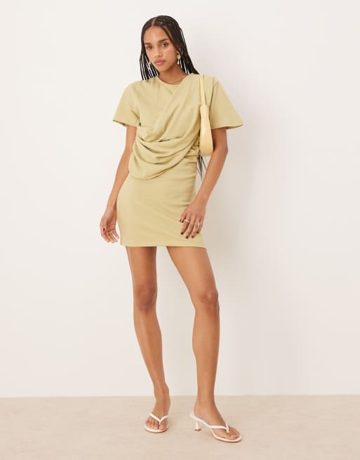 ASOS DESIGN textured short sleeve drape front mini dress in olive green