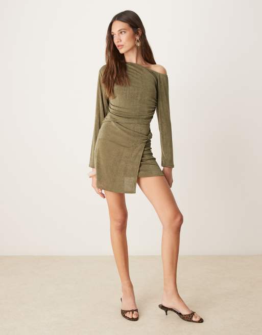 ASOS DESIGN textured skort with knot detailing in olive green - part of a set