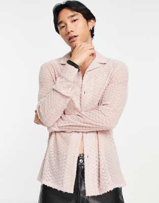 ASOS DESIGN textured tinsel shirt with revere collar in soft pink