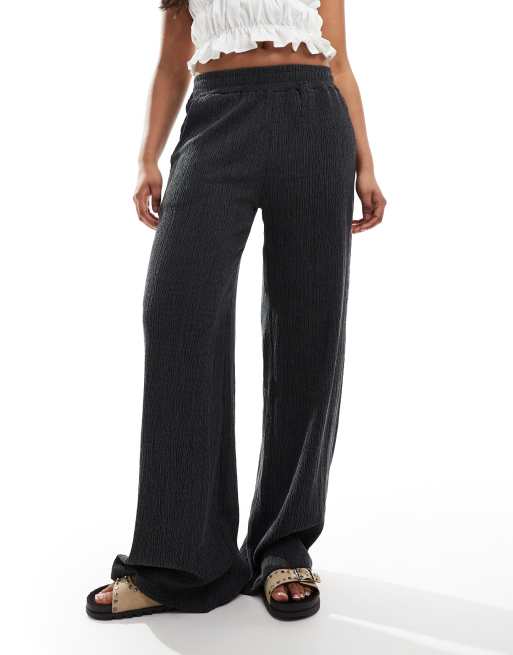 ASOS DESIGN textured wide leg pants in black