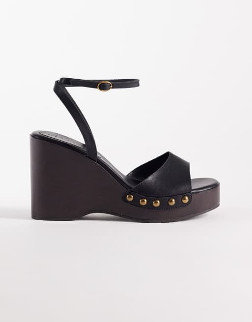 ASOS DESIGN Thea wood effect wedge sandals in black