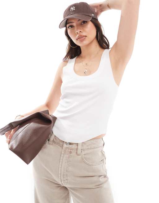 ASOS DESIGN thick bind scoop neck corset hem tank top in white