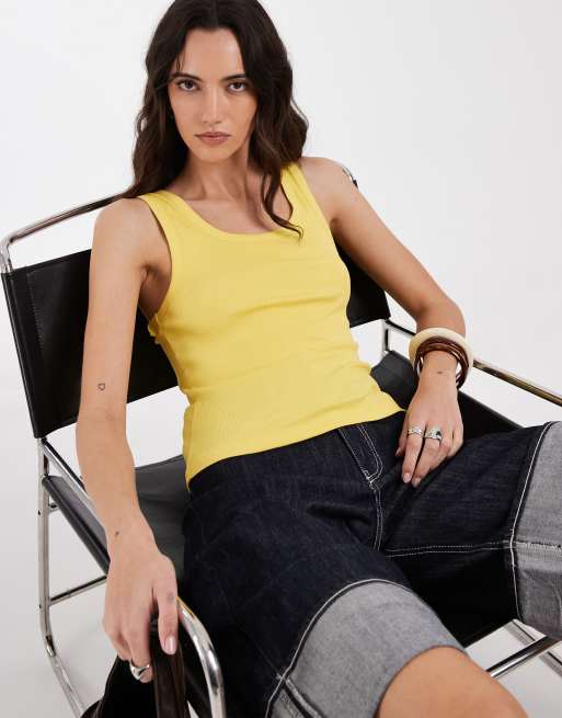 ASOS DESIGN thick binding ribbed scoop neck tank top in yellow