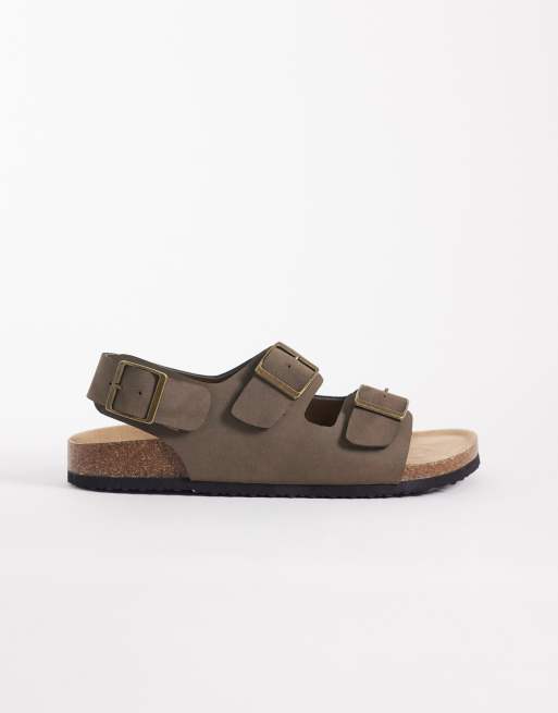 ASOS DESIGN three strap sandals with buckles in taupe