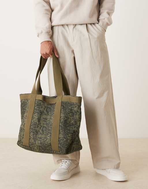ASOS DESIGN tote bag with snake print in khaki