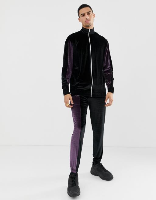 ASOS DESIGN tracksuit track jacket/skinny joggers with colour blocking in velour