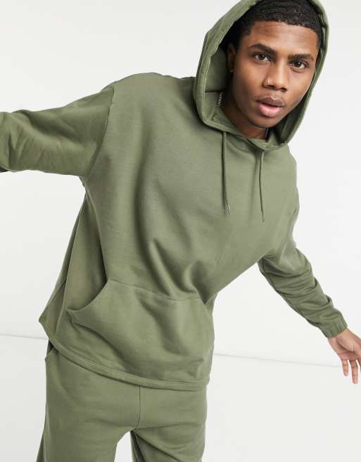 ASOS DESIGN tracksuit with oversized hoodie & oversized sweatpants in khaki - MGREEN