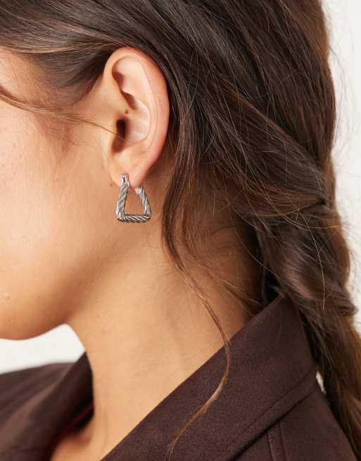 ASOS DESIGN triangular hoop earrings with twist detail in silver tone