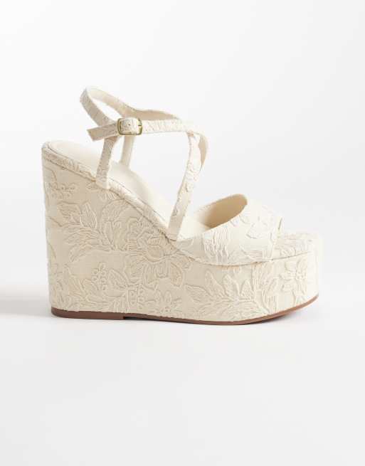 ASOS DESIGN Trista floral lace wedge sandals in cream